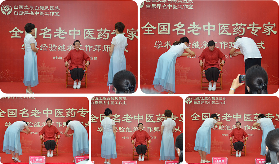 图为弟子们向白彦萍教授行拜师礼